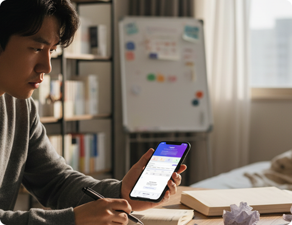 과도한 기능으로 사용자를 압도하는 기존 생산성 앱, 작업 완료율을 낮추는 복잡한 인터페이스, 커스터마이징 옵션으로 인한 결정 피로, 동기 저하로 이어지는 긍정적 강화 부재.