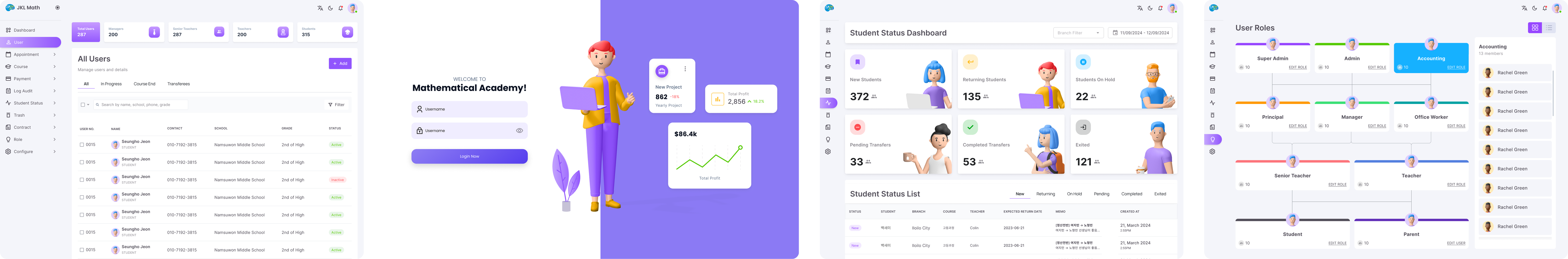 대시보드는 현재 학생, 교사 및 직원 수뿐만 아니라 재정 수익을 한눈에 확인할 수 있으며, 시각적으로도 매력적인 디자인을 제공합니다.
