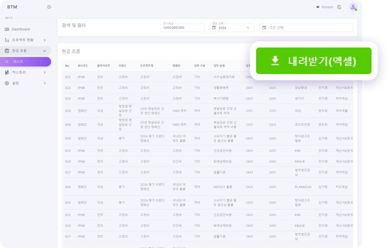 회사명, 캠페인, 마감일 등 다양한 기준에 따라 프로젝트를 손쉽게 정리하세요.